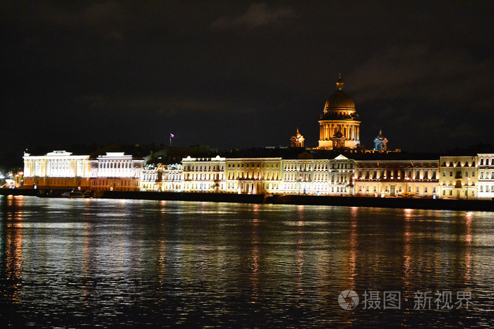在圣彼得堡的英语路堤的夜景照片 正版商用图片0vfrok 摄图新视界